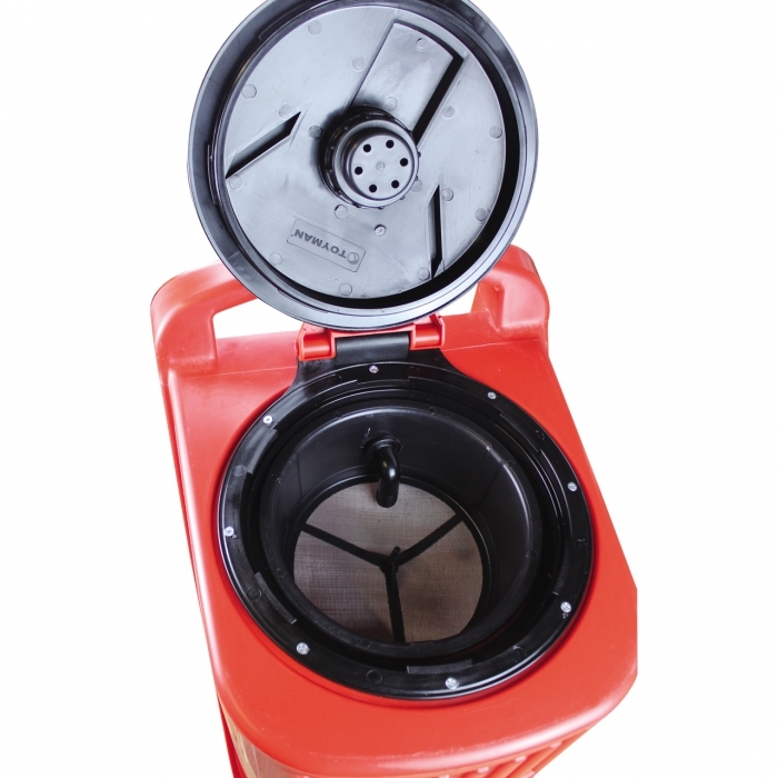Gura largă a rezervorului permite umplerea acestuia în siguranță și este echipată cu un filtru fin (70 microni) care ajută la reținerea particulelor de mizerie.